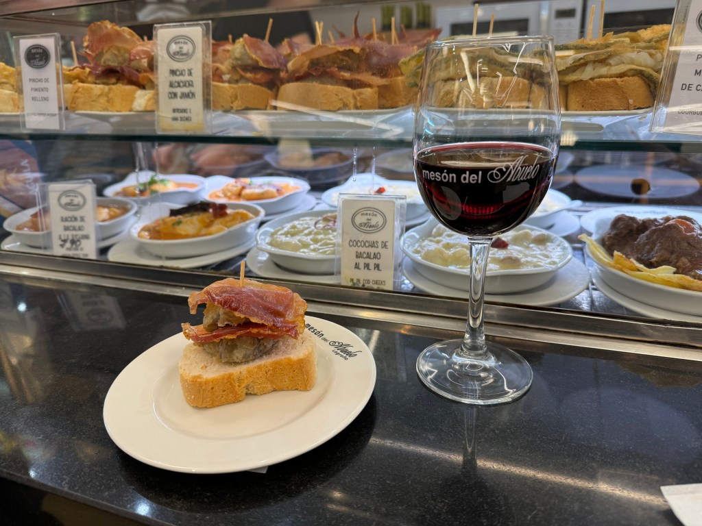 In addition to rest, why not take in a bit of Logroño? The city is full of surprises, with a lively city center and active nightlife. The Laurel/Alba/San Agustin block is a hive of pinchos eateries and bars serving up some wonderful little dishes some would call tapas, but here in the north of Spain are called pinchos. Those accompanied by the bold red Rioja Temperanillo wines make for an enjoyable dinner. It’s almost a pinchos culture. Tomorrow it’s on to Najera. Buen Camino